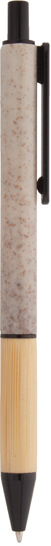 Ekologické plastové kuličkové pero z pšeničné slámy s bambusovým úchopem a barevnými částmi. S modrou náplní.