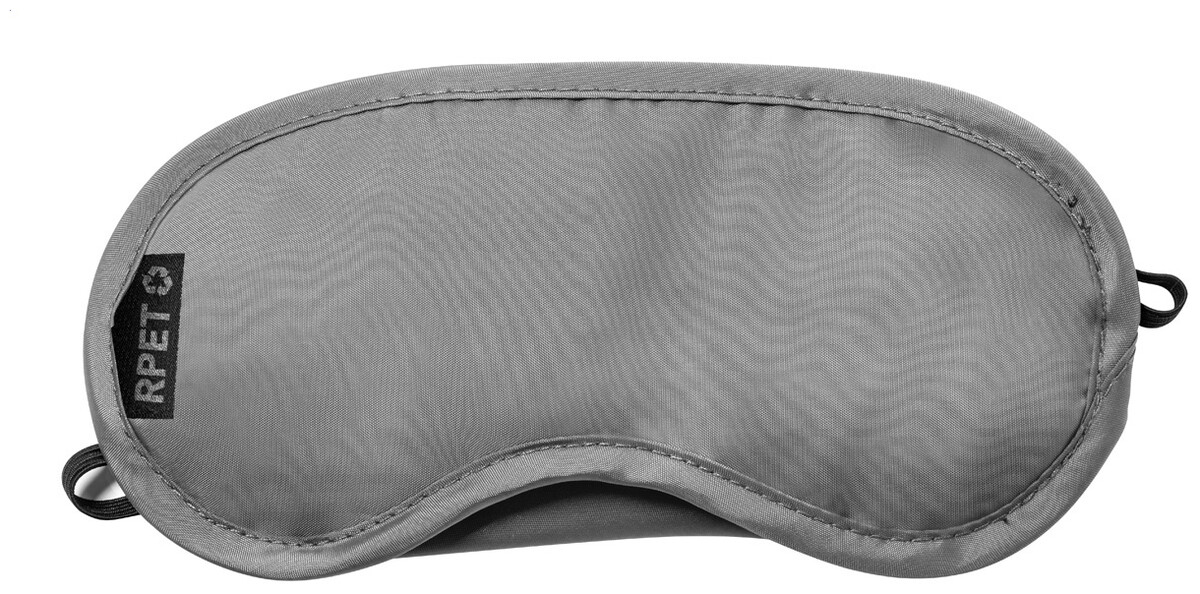 RPET polyesterová cestovní maska na oči s gumovými pásky, v RPET sáčku se stahovací šňůrkou. S výrazným štítkem RPET.