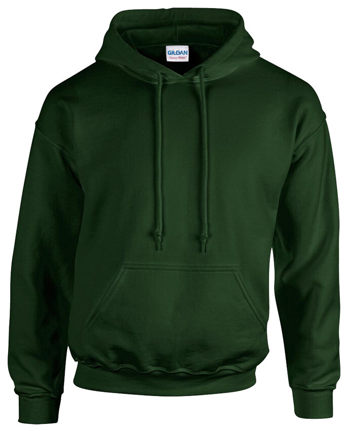 Mikina s kapucí z 50 % bavlny a 50 % polyesteru s přední kapsou. 271 g/m2 (bílá 257 g/m2). Výrobek značky Gildan.