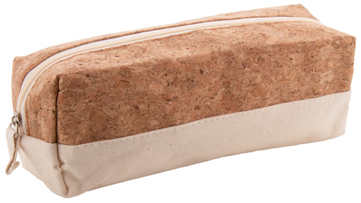 Pouzdro na pera na zip z přírodního korku a bavlny s barevně odpovídajícím bavlněným zipem.