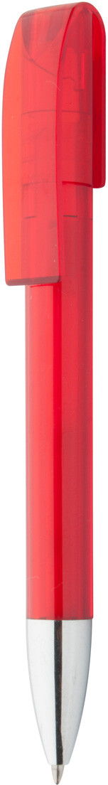 Plastové kuličkové transparentní barevné pero s chromovou špičkou a s modrou náplní.