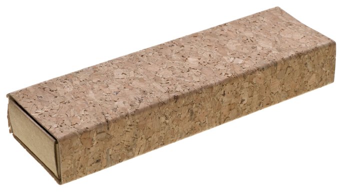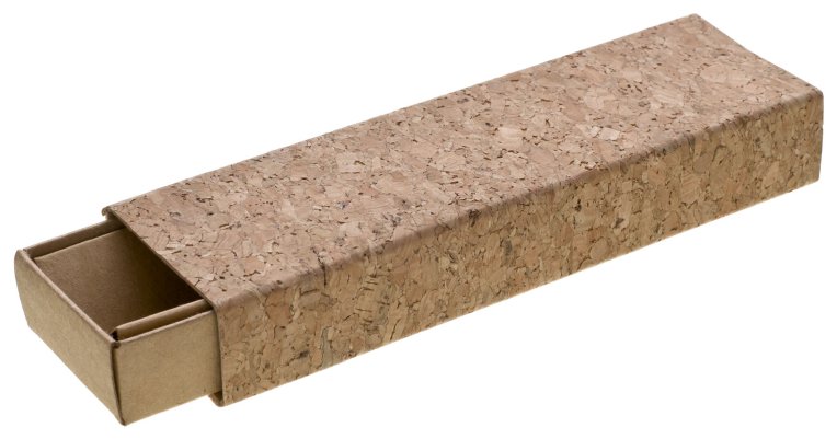 Krabička na 1 propisku z recyklovaného papíru v korkovém přebalu.