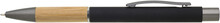 Kovová propiska s hnědo-černými doplňky, pogumovaným povrchem a bambusovým úchopem. Náplň semigelová s mikrohrotem.