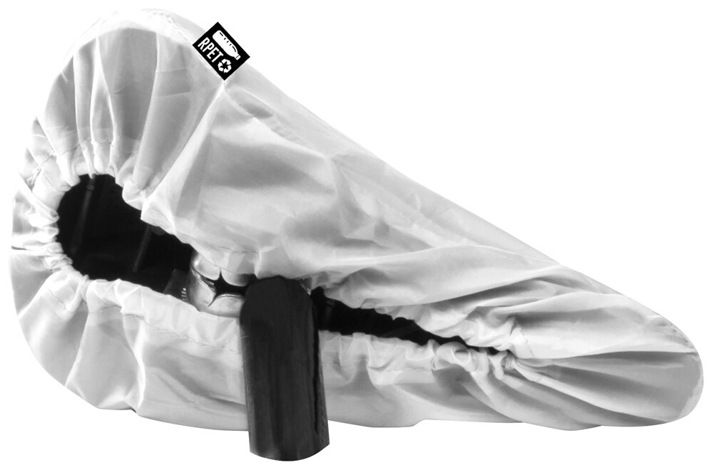 Vodoodpudivý potah sedla jízdního kola z polyesteru 190T RPET. S výrazným štítkem RPET.