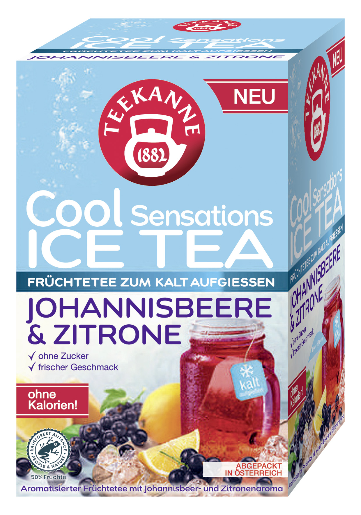 TEEKANNE Cool Sensations je lahodný a osvěžující ice tea, který byl speciálně vyvinut pro přípravu se studenou vodou. TEEKANNE Cool Sensations nabízí osvěžující potěšení z pití bez kalorií a bez cukru.