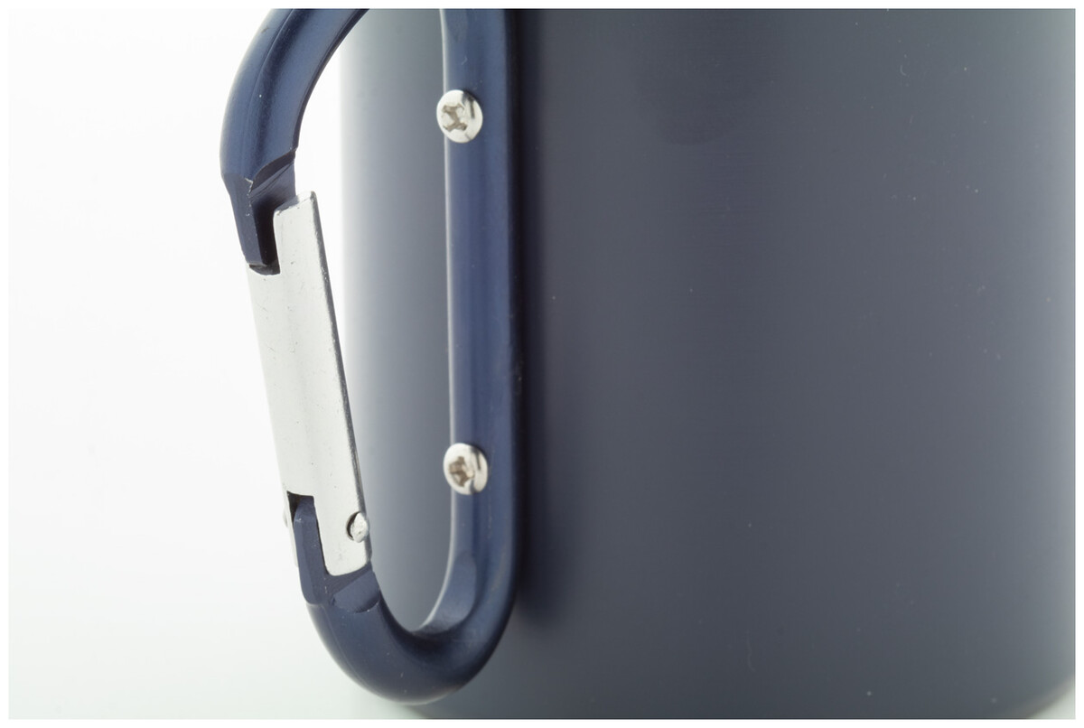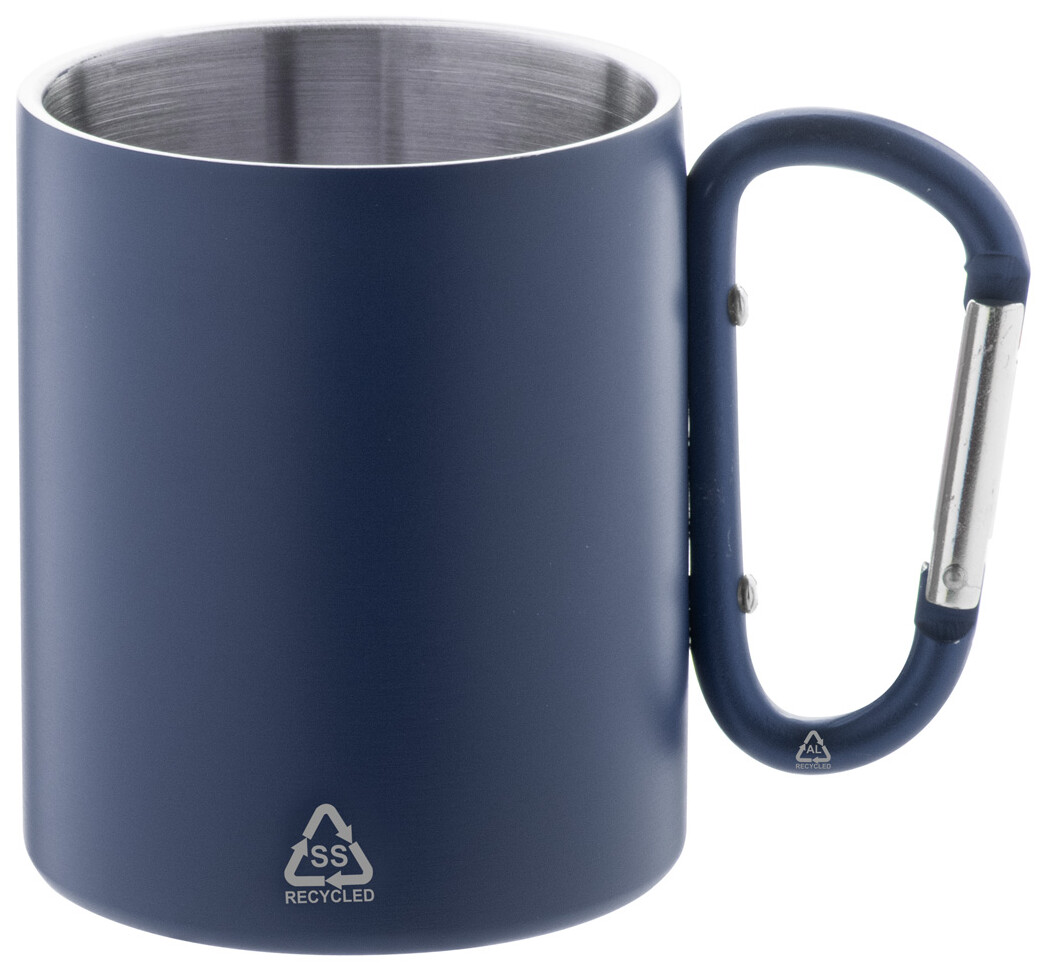 Dvoustěnný termo hrnek z recyklované nerezové oceli s karabinou z recyklovaného hliníku v odpovídající barvě. 300 ml. V kraftové papírové krabici.