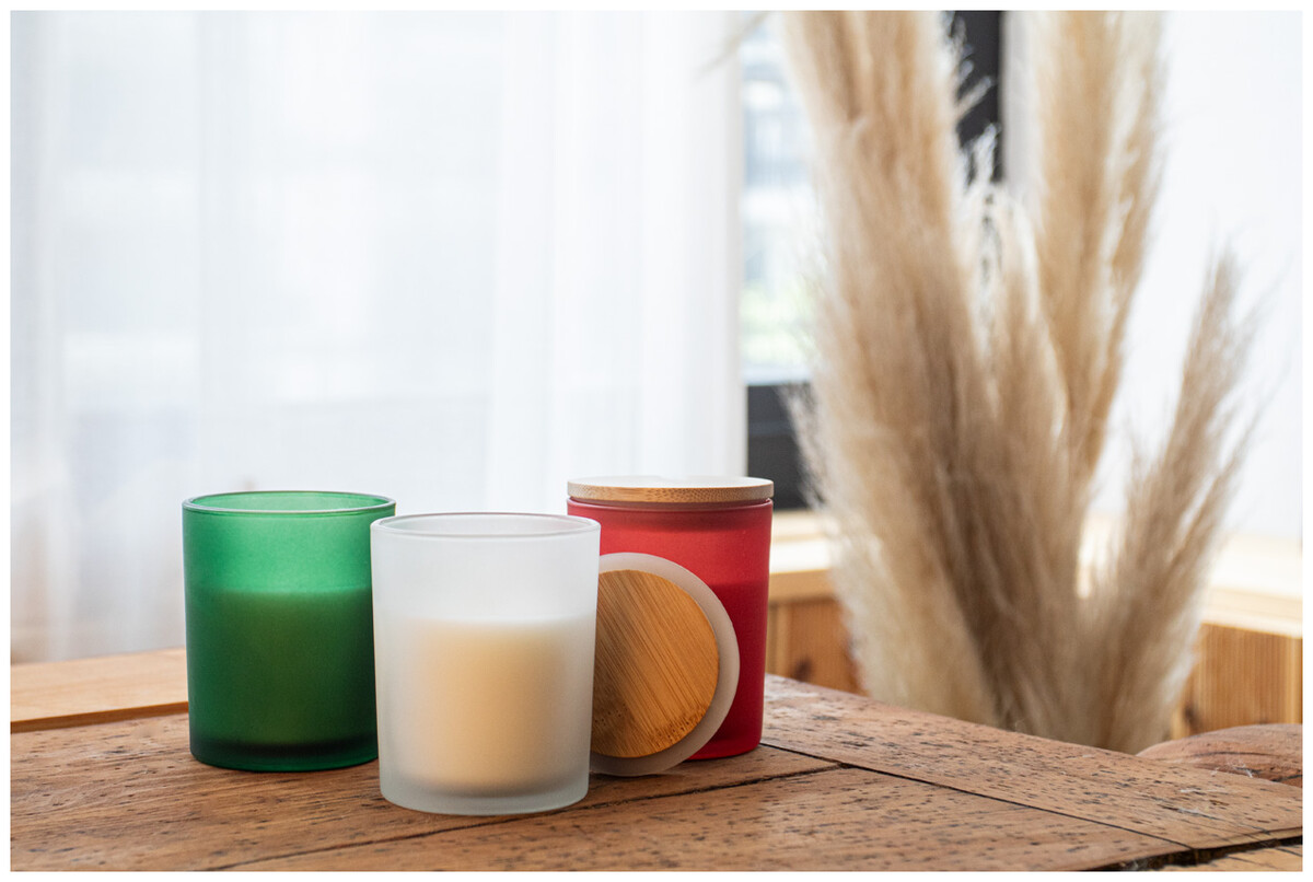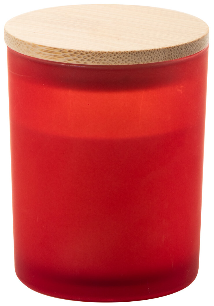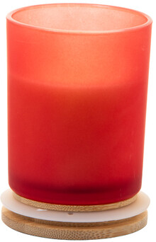 Vosková svíčka na rostlinné bázi v matné skleničce s bambusovým víčkem. Se 120 gramy vosku. V kraftové papírové krabici.