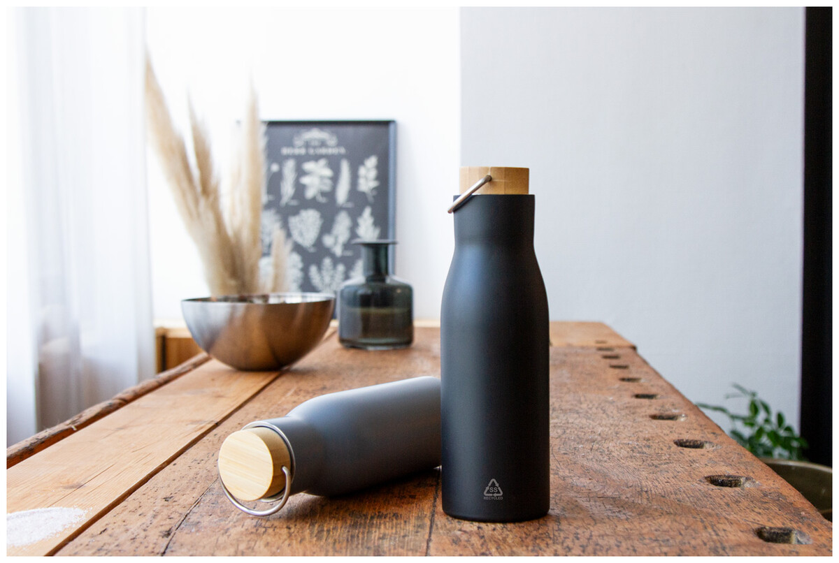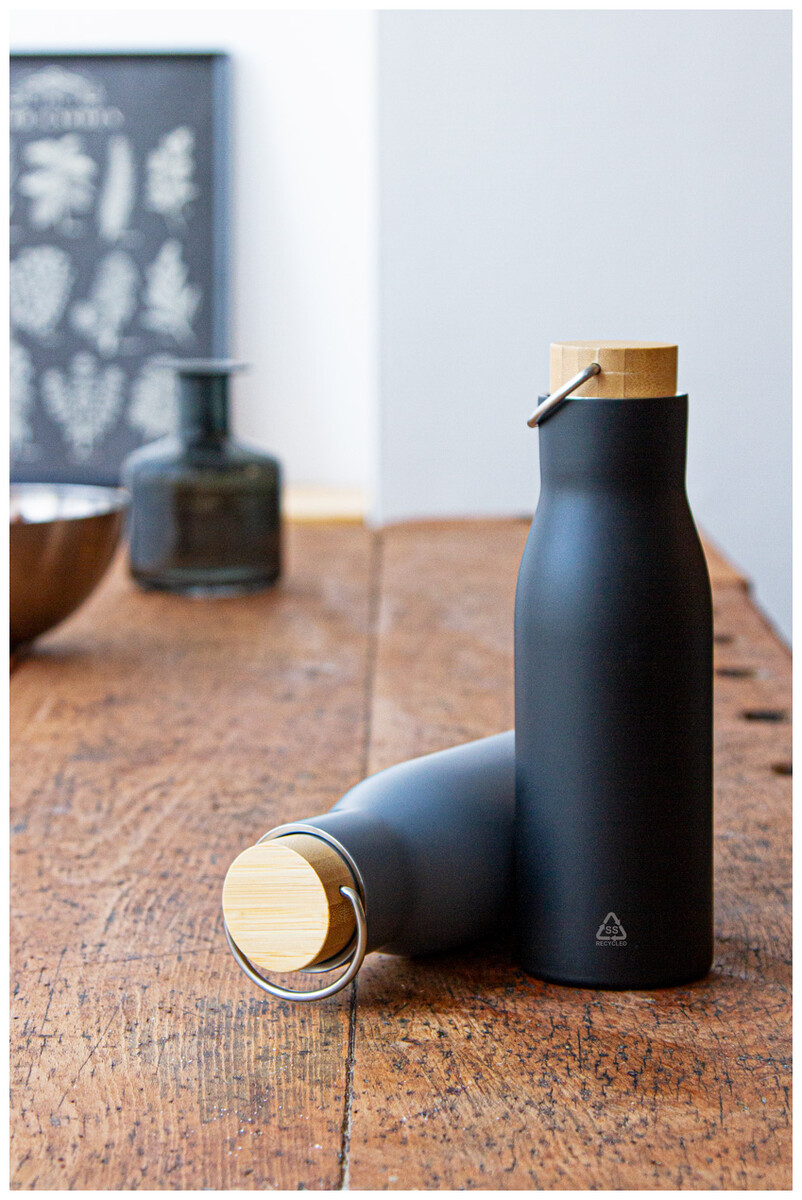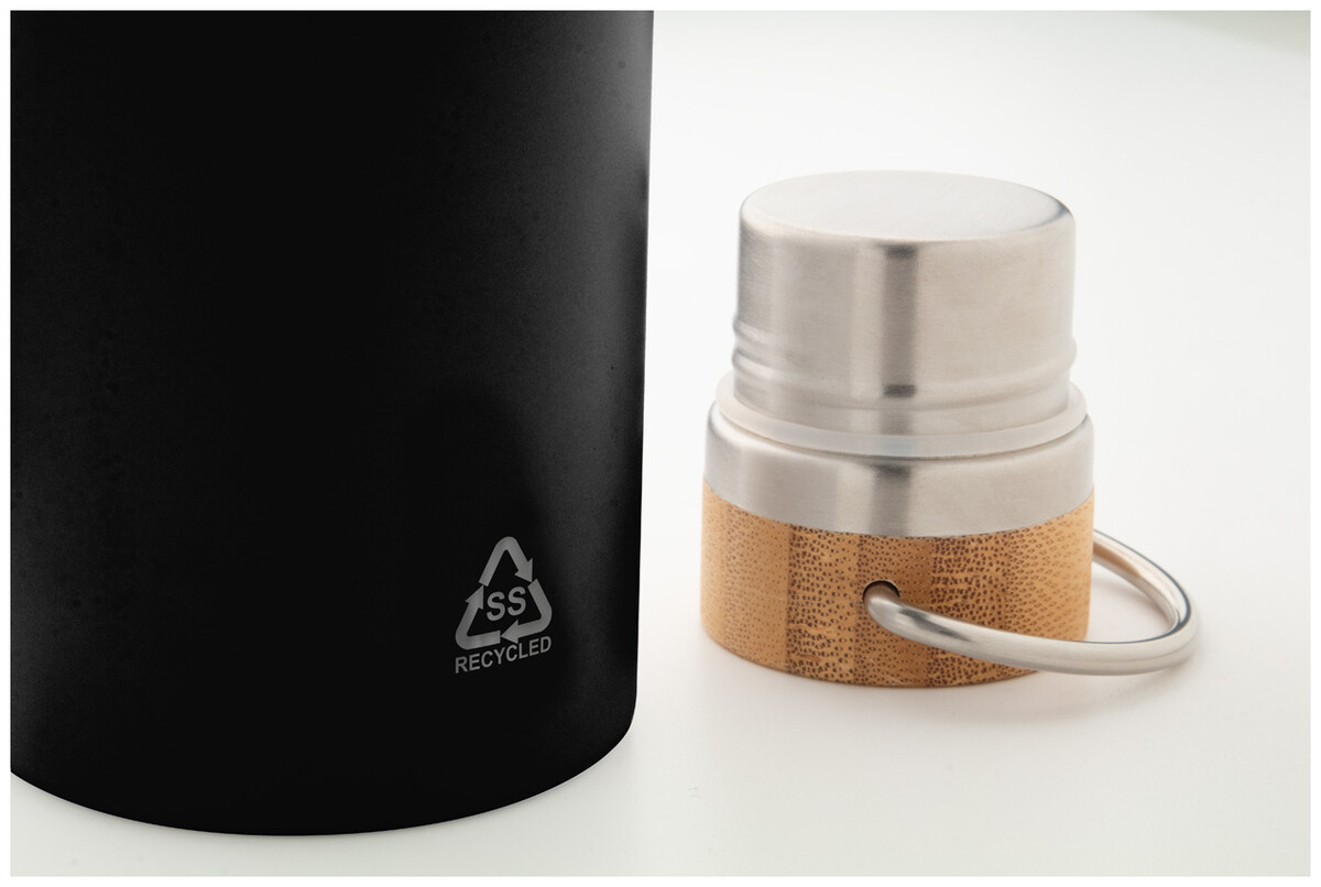 Dvoustěnná nerezová termoska z recyklované nerezové oceli s bambusovým víkem, 500 ml.