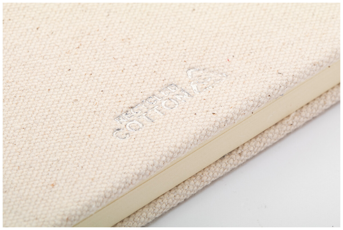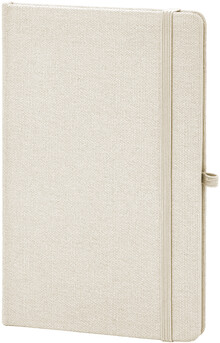 Blok potažený recyklovanou bavlnou s 80 linkovanými listy z recyklovaného papíru. Se záložkou v odpovídající barvě, gumičkou a držákem na pero. Velikost A5.