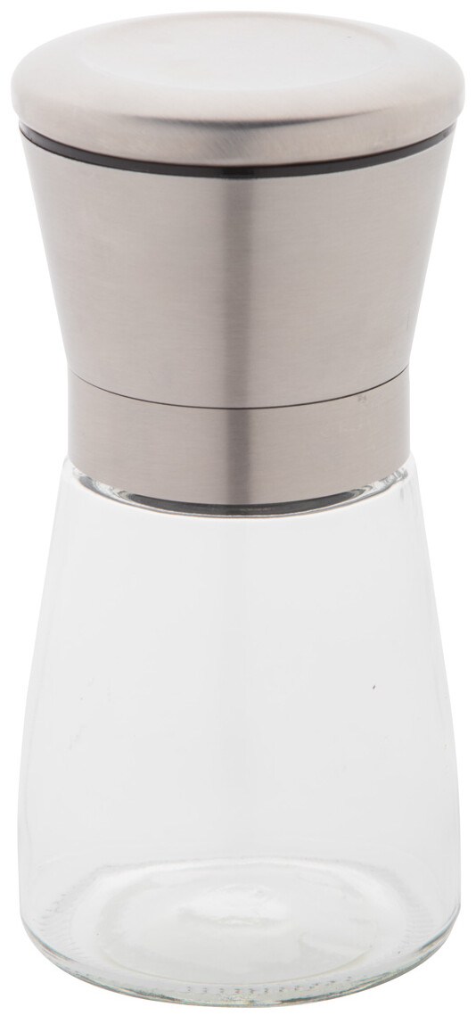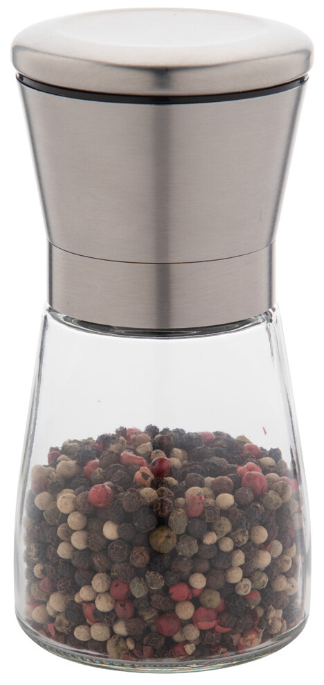 Nerezový ruční mlýnek na sůl a pepř s keramickým jádrem mlýnku a skleněnou nádobou, 180 ml.