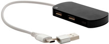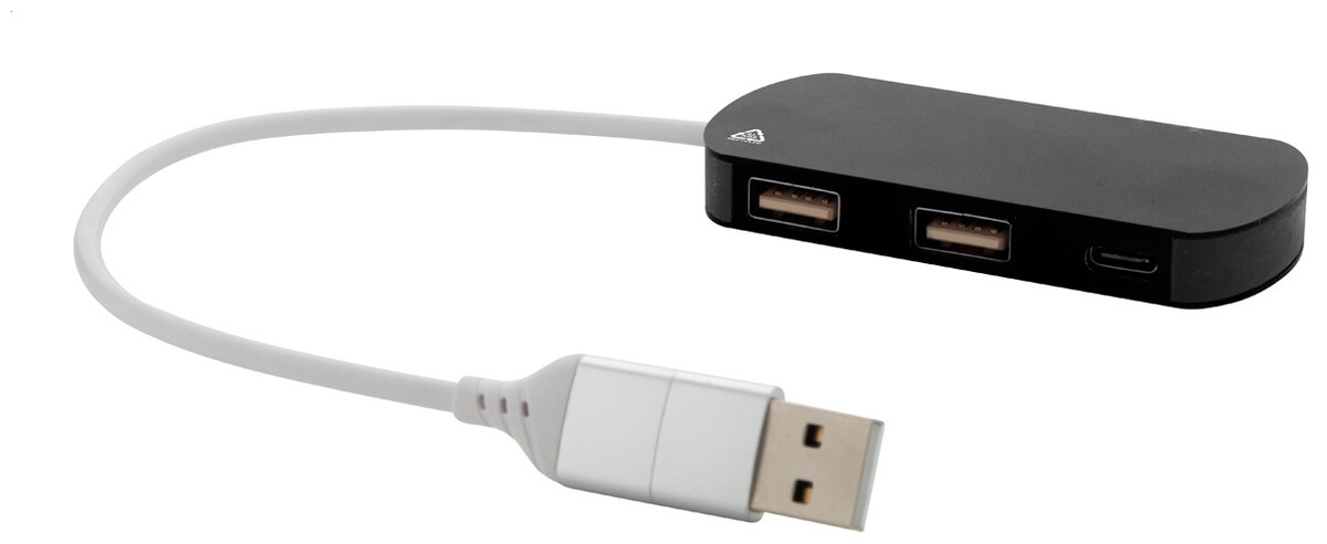 USB hub z recyklovaného hliníku a recyklovaného ABS se 2 USB a 1 USB-C portem, USB 2.0. Včetně kabelu s připojením USB a USB-C.