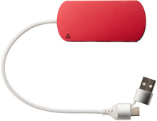 USB hub z recyklovaného hliníku a recyklovaného ABS se 2 USB a 1 USB-C portem, USB 2.0. Včetně kabelu s připojením USB a USB-C.