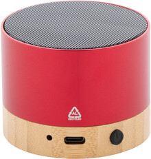 Bezdrátový reproduktor z recyklovaného hliníku s bambusovou základnou. S funkcí hands-free volání a vestavěnou dobíjecí baterií. Včetně nabíjecího kabelu USB.