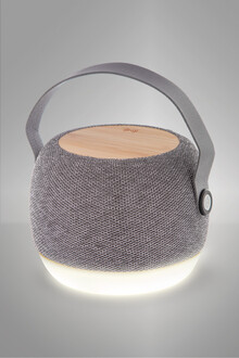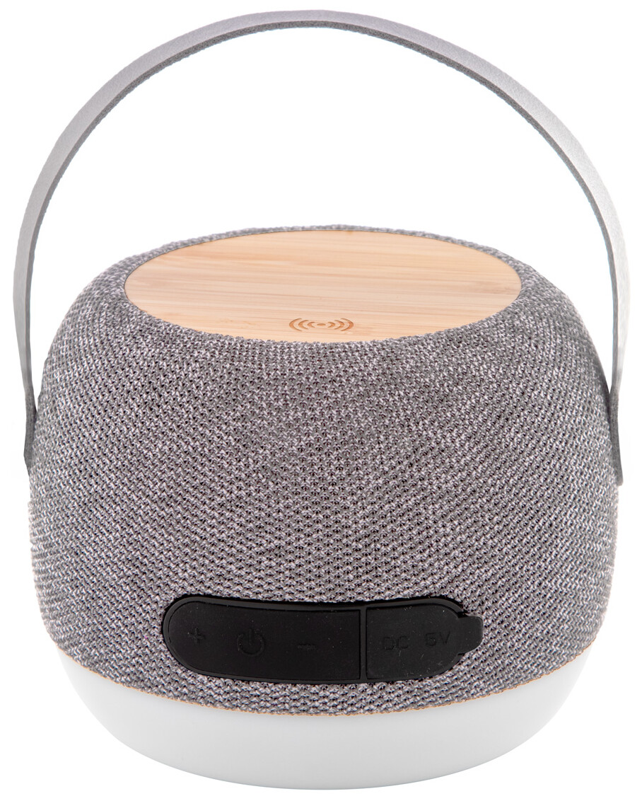 Bezdrátový reproduktor v pouzdře z recyklovaného ABS potaženém tkaninou RPET s LED světlem ve spodní části a bezdrátovou rychlonabíječkou s bambusovou deskou (15 W) v horní části. S koženým řemínkem na přenášení z PU kůže, funkcí hands-free volání a vestavěnou dobíjecí baterií (1200 mAh). Včetně nabíjecího kabelu USB.