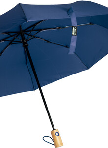 Plně automatický (otevřít/zavřít), větruodolný skládací deštník s 8 panely v pouzdře v odpovídající barvě. S kovovým rámem, sklolaminátovými žebry a bambusovou rukojetí. Pongee 190T RPET. S výrazným štítkem RPET.