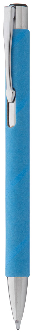 Kuličkové pero z recyklovaného papíru s kovovými částmi. S modrou náplní.