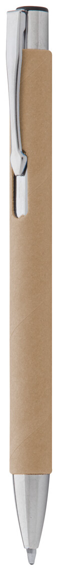 Kuličkové pero z recyklovaného papíru s kovovými částmi. S modrou náplní.