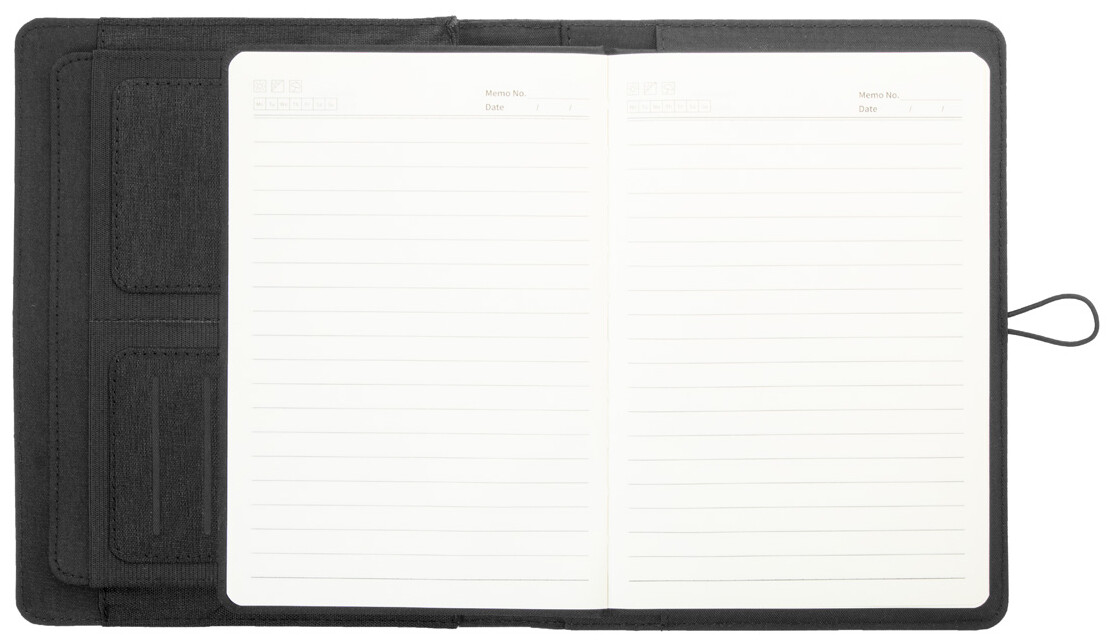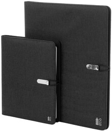 Polyesterová složka na dokumenty A5 z 300D RPET s 64 linkovaným poznámkovým blokem a několika vnitřními kapsami s organizérem.