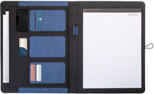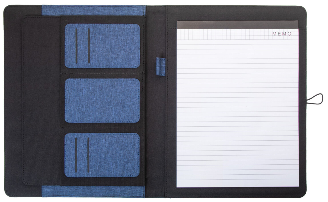Polyesterová složka na dokumenty A4 z 300D RPET s 25 linkovaným poznámkovým blokem a několika vnitřními kapsami s organizérem.