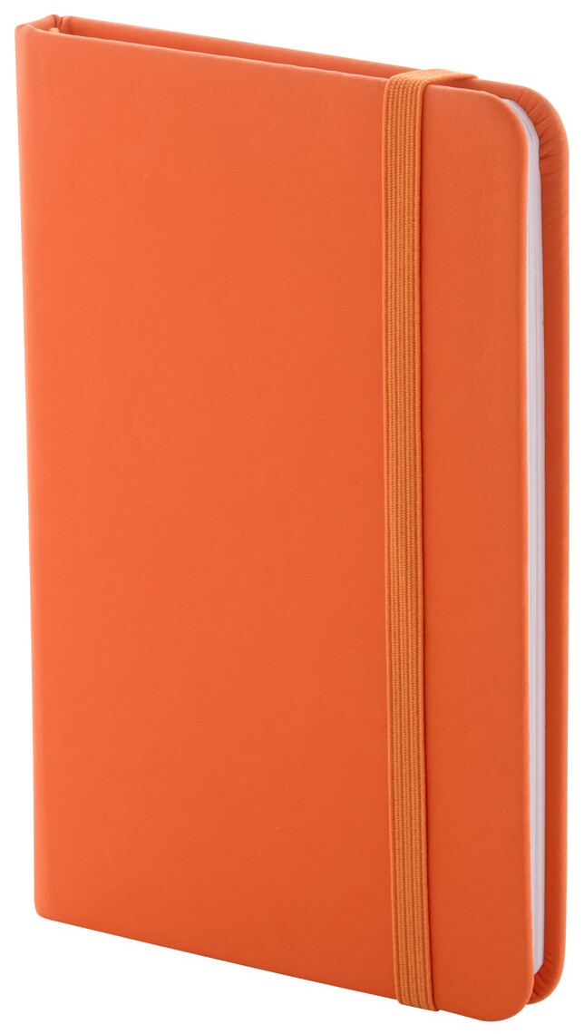 Blok potažený recyklovanou PU kůží se 100 linkovanými listy z recyklovaného papíru. Se záložkou v odpovídající barvě a gumičkou. Velikost A6.