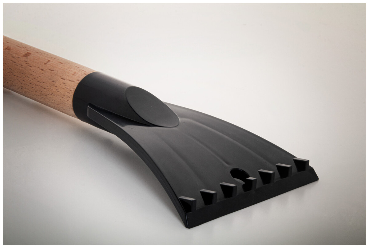 Recyklovaná ABS škrabka na led s kartáčem a bambusovou rukojetí.