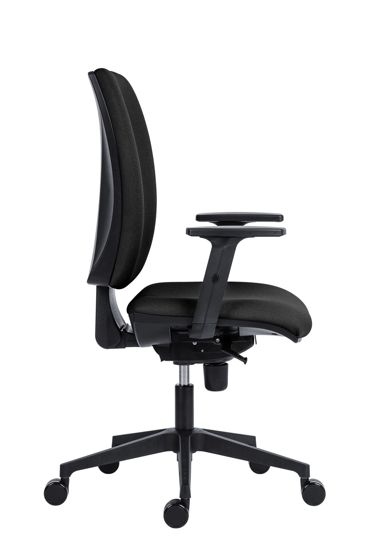 Cena je včetně područek AR 11, židle s čalouněným sedákem a opěrákem, výškové nastavení opěráku mechanismem up-down, jednopákový synchronní mechanismus SYN-K se čtyřnásobnou aretací a automatickým nastavením síly protiváhy, nylonová černá báze, kolečka pr. 60 mm univerzálně použitelná pro všechny povrchy, nosnost 150 kg, český výrobek, záruka 36 měsíců