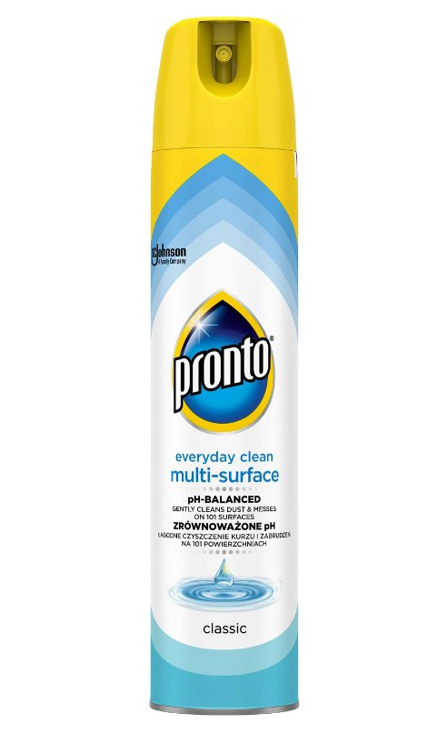 Pronto originál je skvělý pomocník k odstraňování prachu a leštění povrchů, jemně čistí a odstraňuje prach z kovů, dřeva, skla, elektroniky a vytváří lesk beze šmouh. Obsahuje antistatické složky, které zabraňují opětovnému usazování prachu. Není vhodný na neošetřené dřevěné povrchy, a LCD nebo plazmové obrazovky.