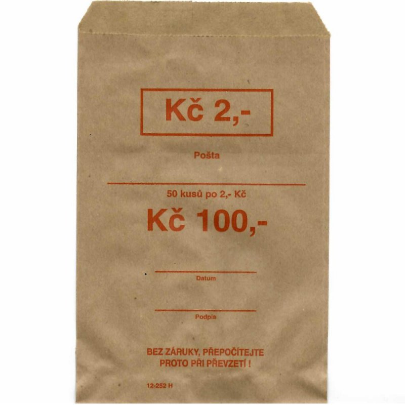 Bankovní sáček 110 x 170, hodnota 2,- Kč, 2000 ks