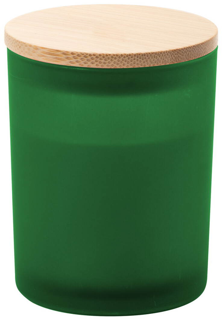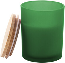 Vosková svíčka na rostlinné bázi v matném skleněném držáku s bambusovým víčkem. S 200 gramy vosku. V kraftové papírové krabici.