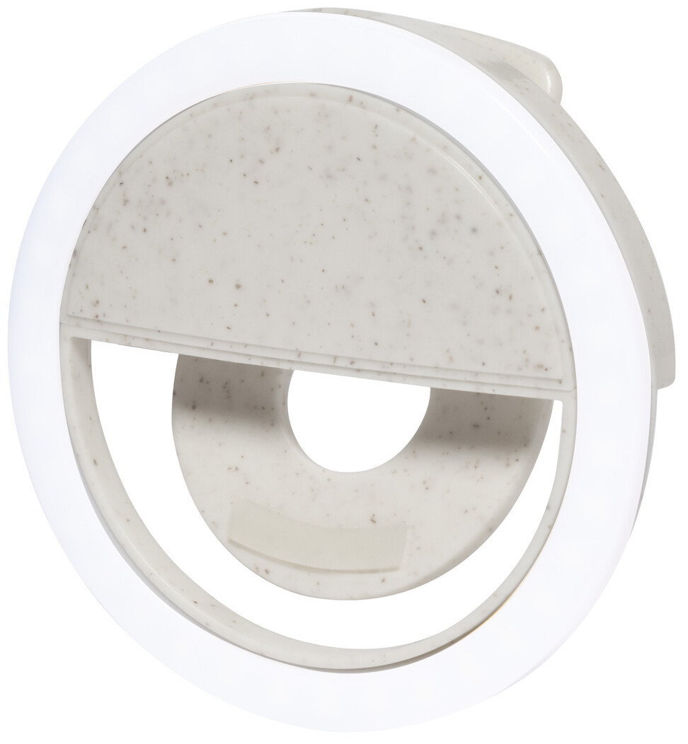Ekologické plastové selfie kruhové světlo z pšeničné slámy s 36 LED pro mobilní telefony. Se 3 nastavitelnými úrovněmi jasu a vestavěnou dobíjecí baterií. Včetně USB nabíjecího kabelu.