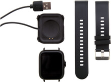Multifunkční bezdrátové chytré hodinky v kovovém pouzdře s 1,44" dotykovým TFT displejem, dobíjecí baterií 150 mAh a silikonovým řemínkem. Disponují několika funkcemi pro sledování zdravotního stavu a chytrými funkcemi, jako je například měření srdečního tepu, krevního tlaku a kyslíku, kromě mnoha dalších. Lze jej připojit k chytrým telefonům pomocí bezplatné aplikace dostupné pro systémy iOS a Android. Včetně nabíjecího kabelu USB. Voděodolnost IP65.