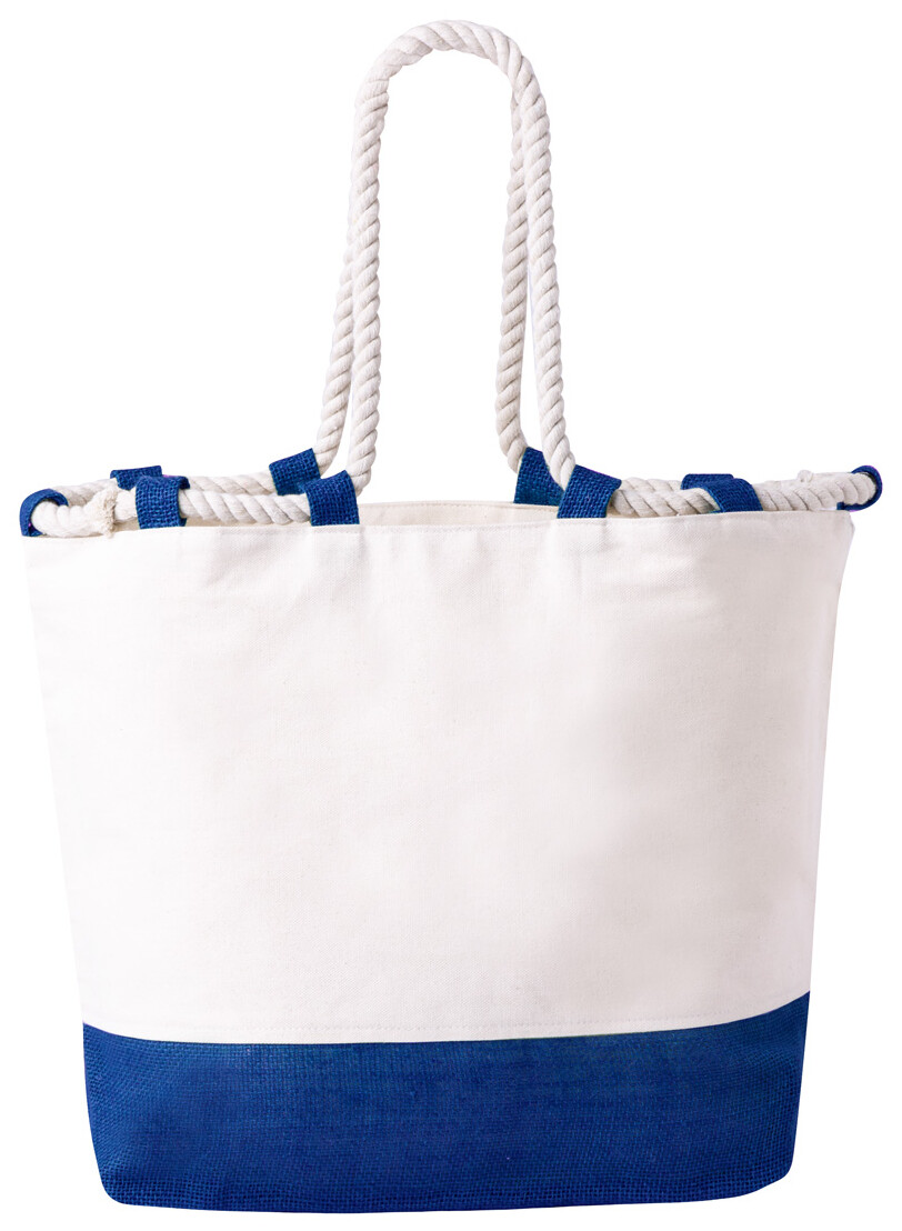Dvoubarevná plážová taška z juty a bavlny s uchy z pletené šňůry, 280 g/m2.