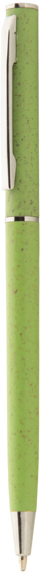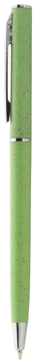 Ekologické plastové kuličkové pero z pšeničné slámy s chromovými detaily. S modrou náplní.