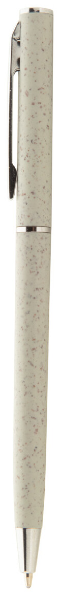Ekologické plastové kuličkové pero z pšeničné slámy s chromovými detaily. S modrou náplní.