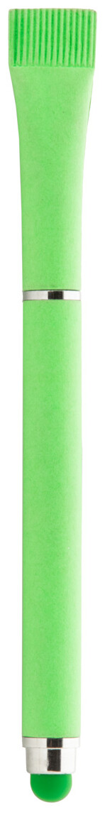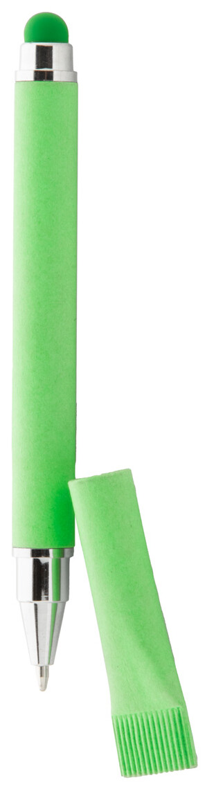 Kuličkové pero z recyklovaného papíru a dotykové pero s odpovídající barevnou krytkou. S modrou náplní.