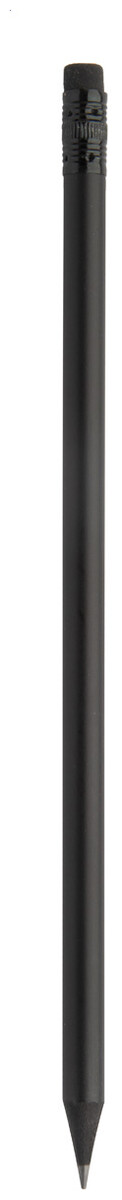 Černá dřevěná tužka v metalickém provedení, s černou gumou. Ořezaná, třída HB.