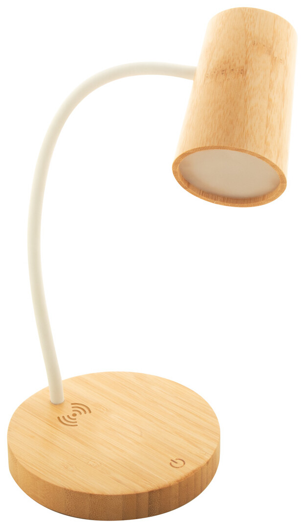Multifunkční stolní lampa z bambusu a recyklovaného PP plastu se zabudovanou bezdrátovou rychlonabíječkou (15W). S režimy teplého, přirozeného a studeného světla. Včetně USB nabíjecího kabelu.