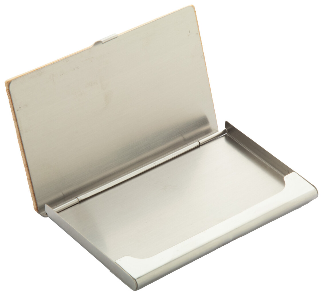 Kovový vizitkář potažený bambusem.