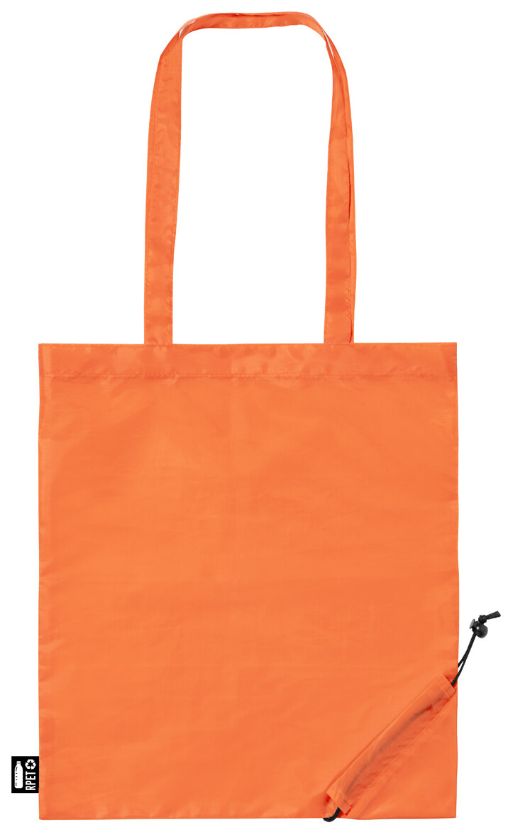 Skládací nákupní taška RPET s dlouhými uchy. Polyester 190T RPET, s výrazným štítkem RPET.