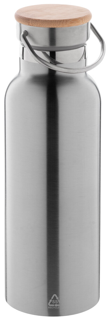 Dvoustěnná vakuově izolovaná termoska z recyklované nerezové oceli s bambusovým víčkem. 500 ml.