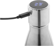 Dvoustěnná vakuově izolovaná termoska z recyklované nerezové oceli s dotykovým LED teploměrem na víčku. 500 ml. S vestavěnou USB dobíjecí baterií. Včetně USB nabíjecího kabelu.