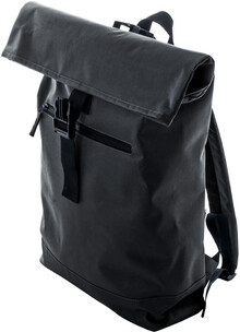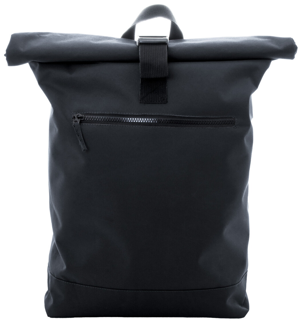 Rolovací batoh RPET se zapínáním na přezku, přední kapsa na zip, polstrovaná přihrádka na notebook (15"), polstrovaná záda a ramenní popruhy. Polyester 600D RPET s výrazným štítkem RPET.
