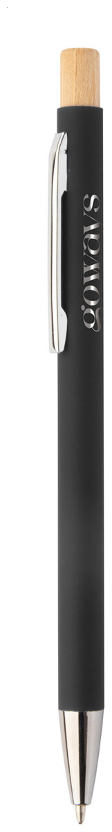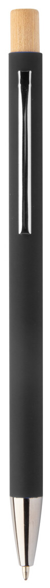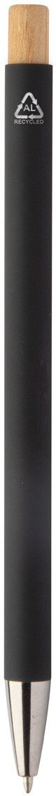 Kuličkové pero z recyklovaného hliníku s pogumovaným povrchem a bambusovým tlačítkem a chromovými detaily. Se speciální vrstvou pro zrcadlové laserové gravírování. S modrou náplní.