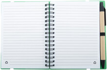 Spirálový blok A6 z recyklovaného papíru se 70 linkovanými listy a 125 popisovači stránek (v 5 různých barvách). S gumovým páskem a držákem na pero. Včetně kuličkového pera z recyklovaného papíru s modrou náplní.
