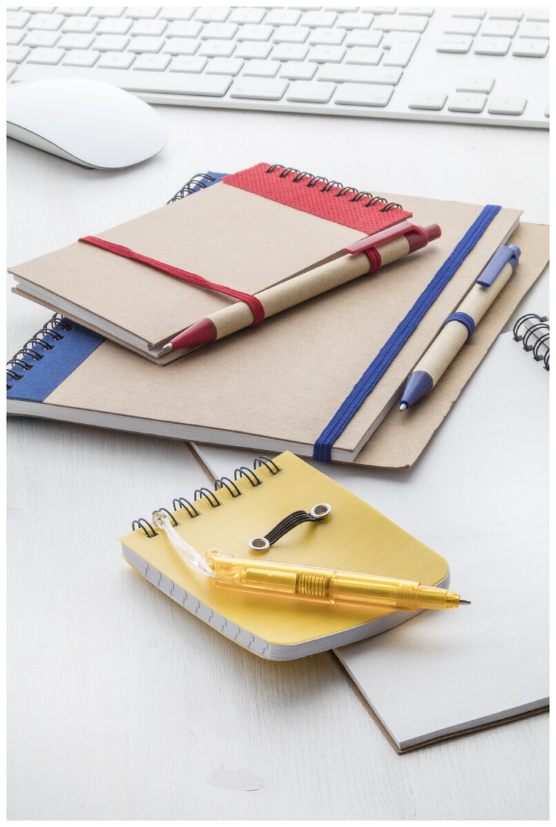 Nelinkovaný blok z recyklovaného papíru, se 60 listy a s papírovým kuličkovým perem.
