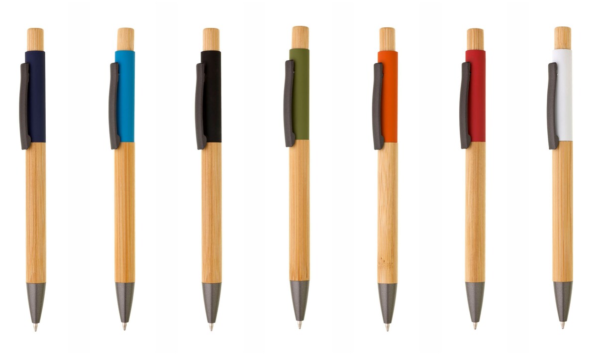 Bambusová propiska s bílou hliníkovou částí pod klipem, ideálním pro značení laserem. Náplň X20 modře píšící. Kolekce SAVE THE NATURE.
