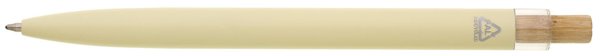 Žlutá designová kovová propiska z recyklovaného hliníku. Tmavý kovový klip je uchycen v ozdobné transparentní koncovce, doplněné bambusovým cvakátkem. Náplň velkoobsahová, modře píšící. Kolekce SAVE THE NATURE.