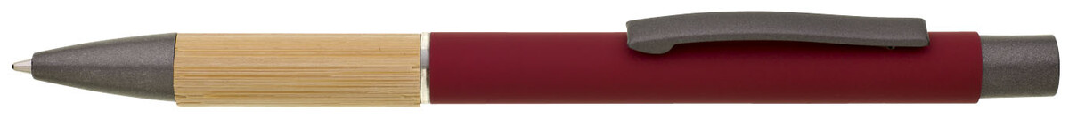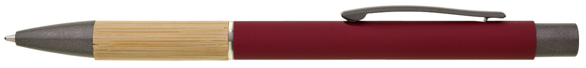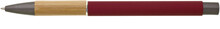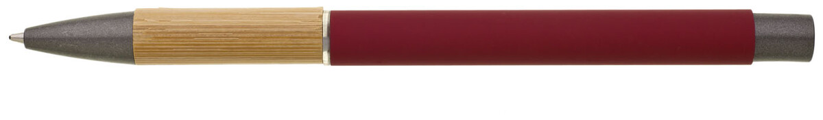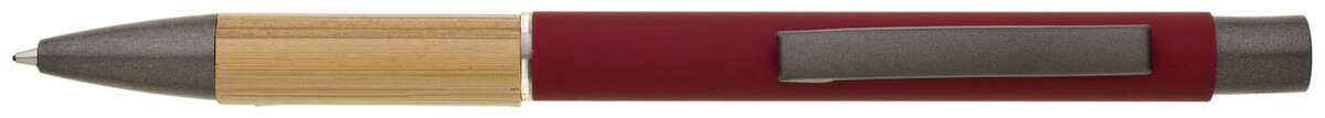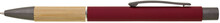 Kovová propiska s hnědo-černými doplňky, červeným pogumovaným povrchem a bambusovým úchopem. Náplň VO modře píšící. Kolekce SAVE THE NATURE.