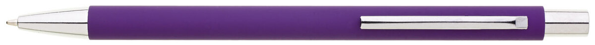 Tenká, jednoduchá propiska s fialovým pogumovaným tělem a chromovými doplňky. Náplň X20, modře píšící.