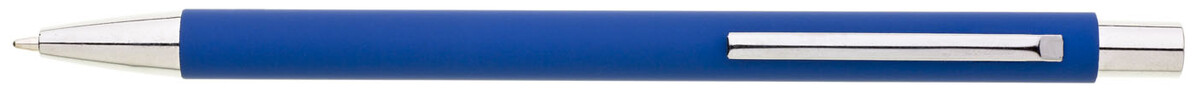 Tenká, jednoduchá propiska s modrým pogumovaným tělem a chromovými doplňky. Náplň X20, modře píšící.